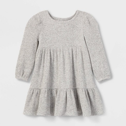 Toddler Girls Tiered Cozy Waffle Long Sleeve Dress Cat Jack Gray Target